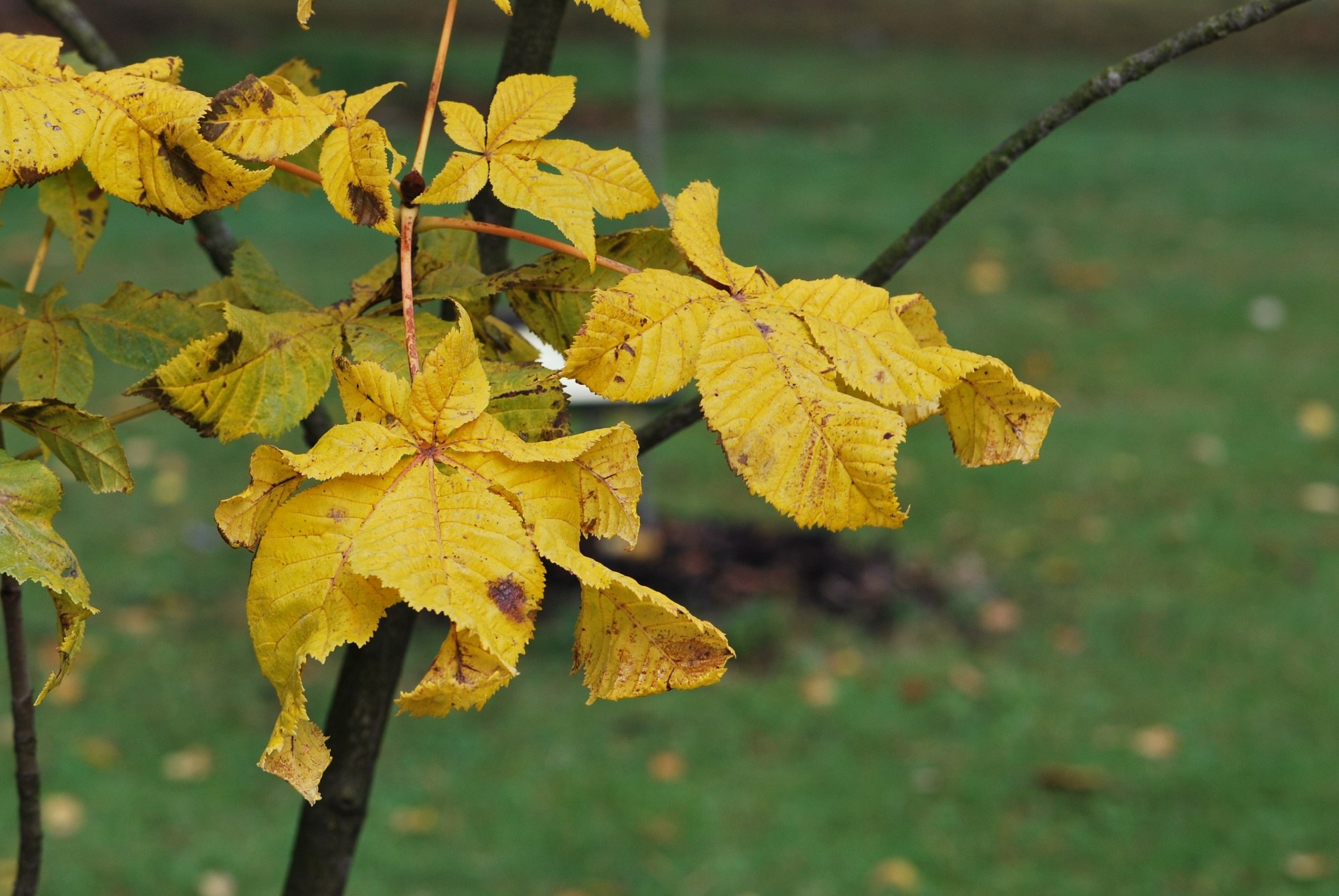 Aesculus × carnea 'Briotii' - jírovec pleťový 'Briotii' - listy podzim.jpg