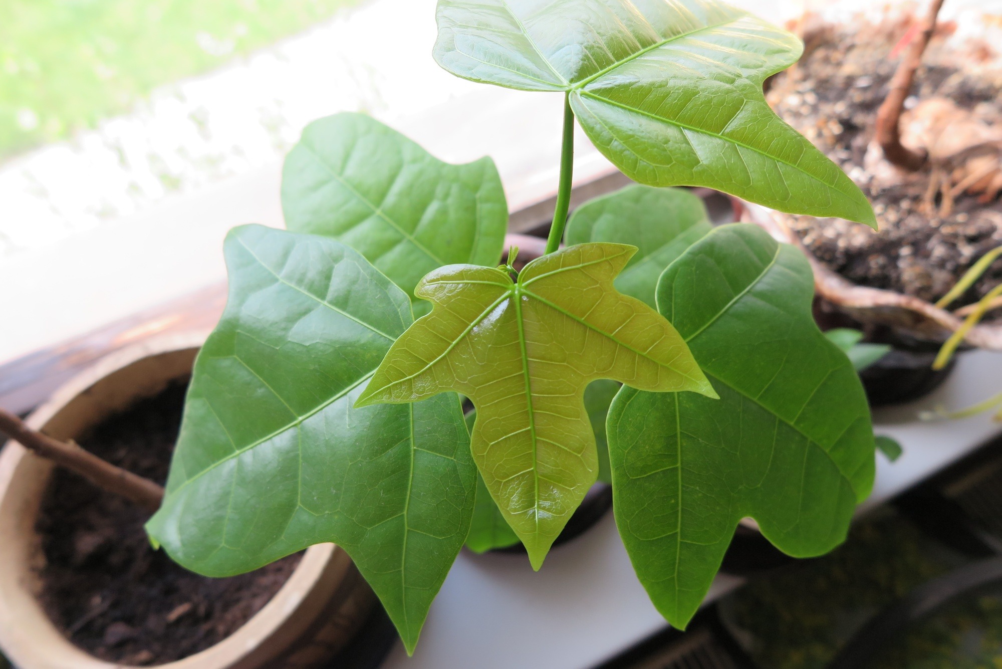 Brachychiton discolor - brachychiton - tříletý semenáček.jpg