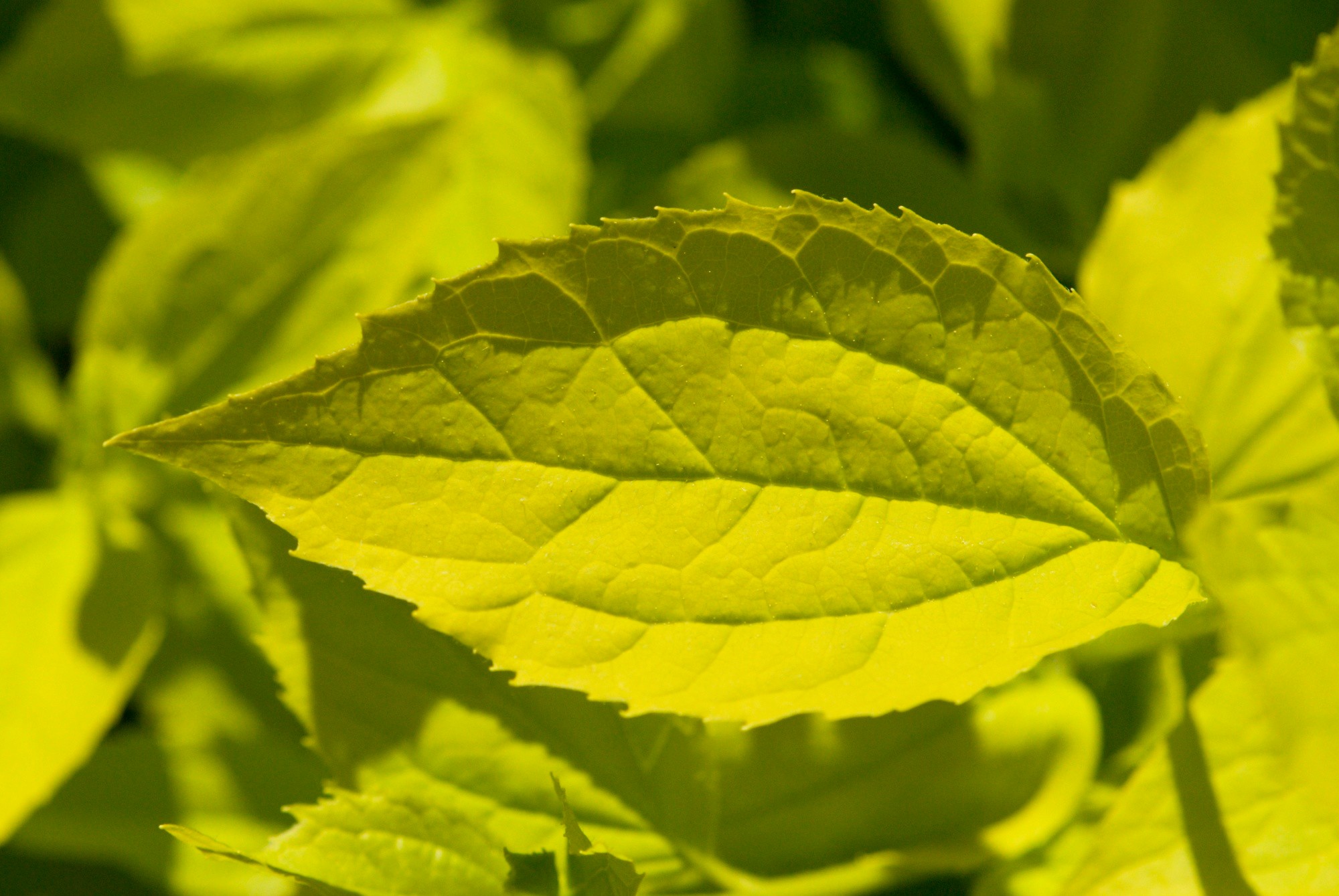 Philadelphus coronarius 'Aureus' - pustoryl věncový - list léto