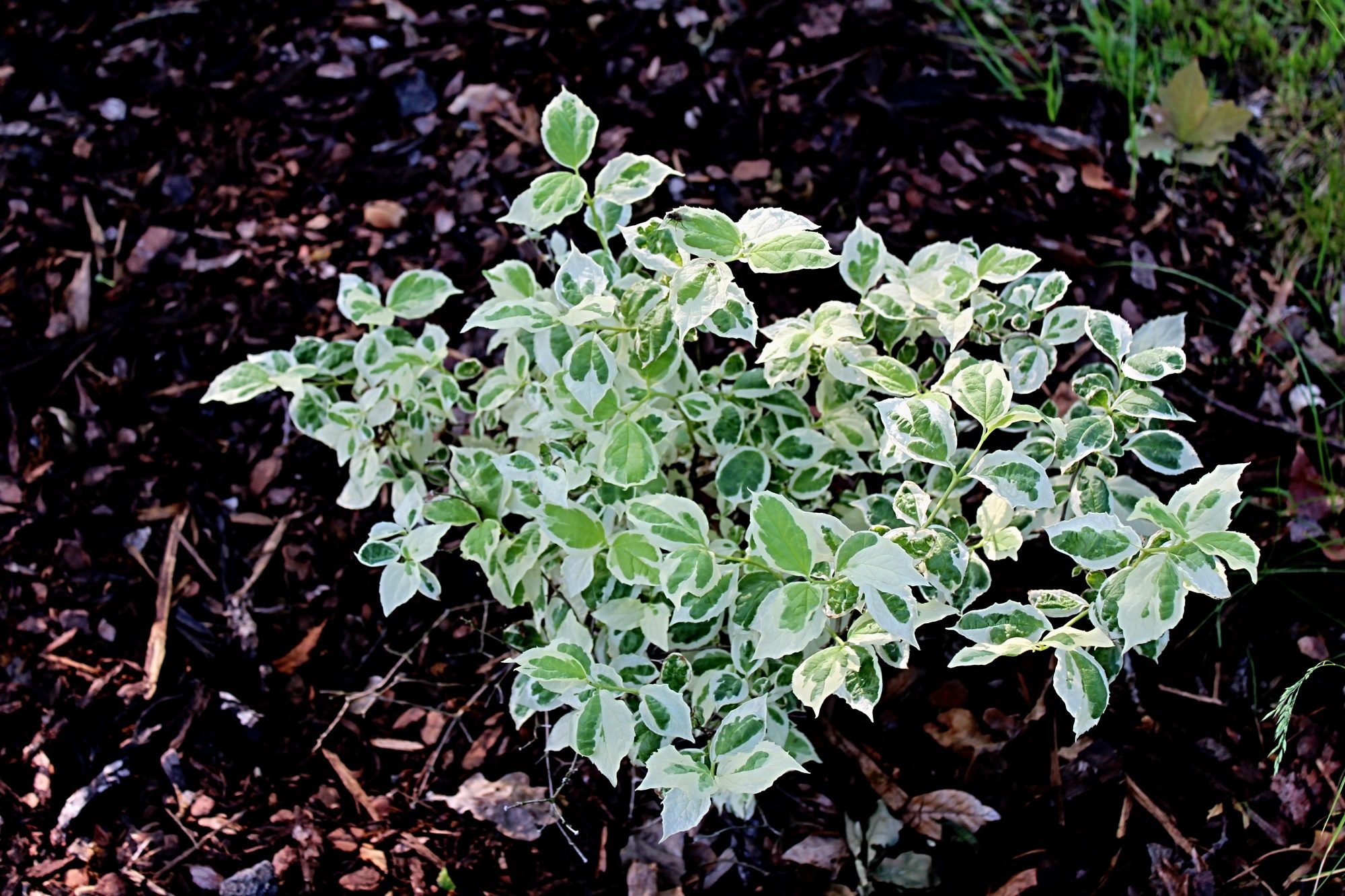 Philadelphus coronarius 'Variegata' - jarní listy