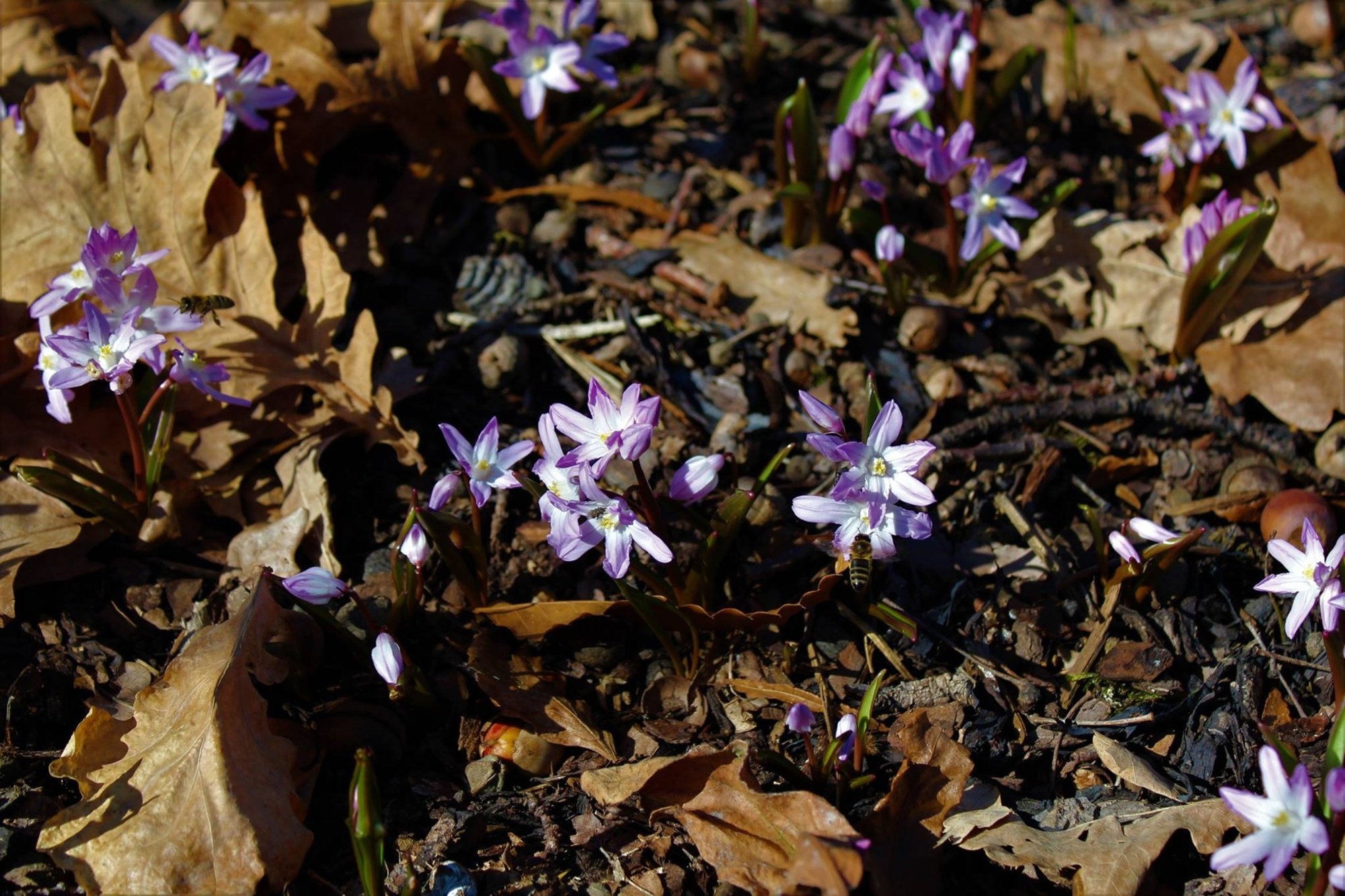 Scilla kladnii - ladoňka karpatská - květ s opylovačem